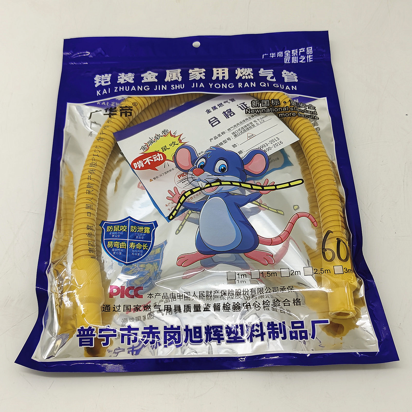 广华帝燃气专用管(黄色 软接头 家用低压/铠装 新国标)