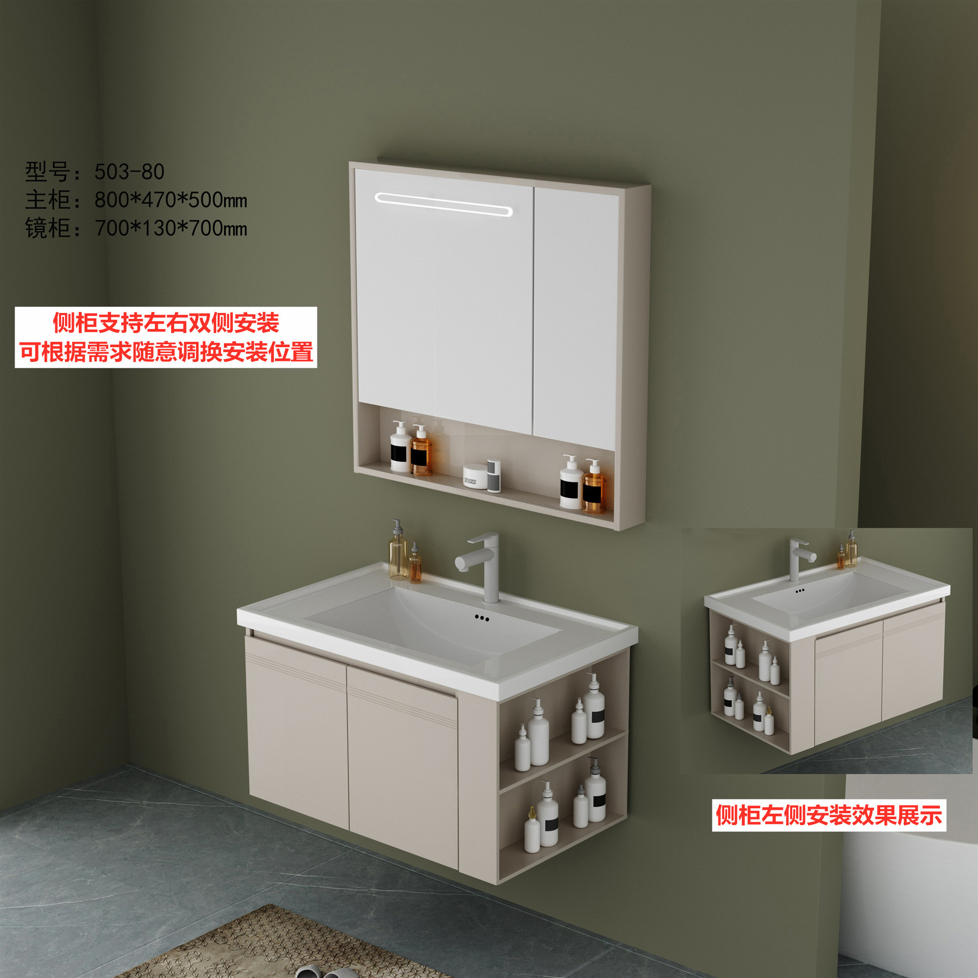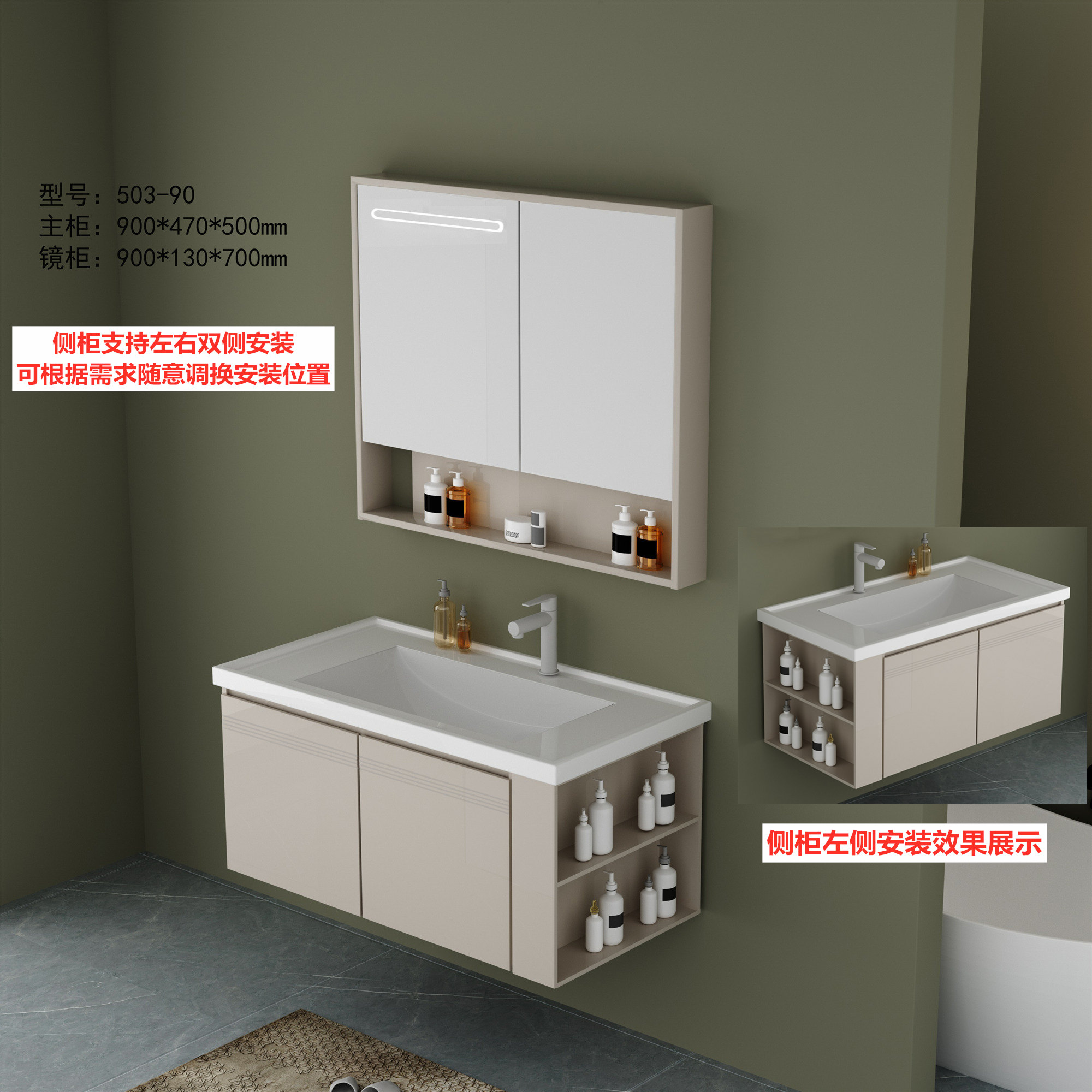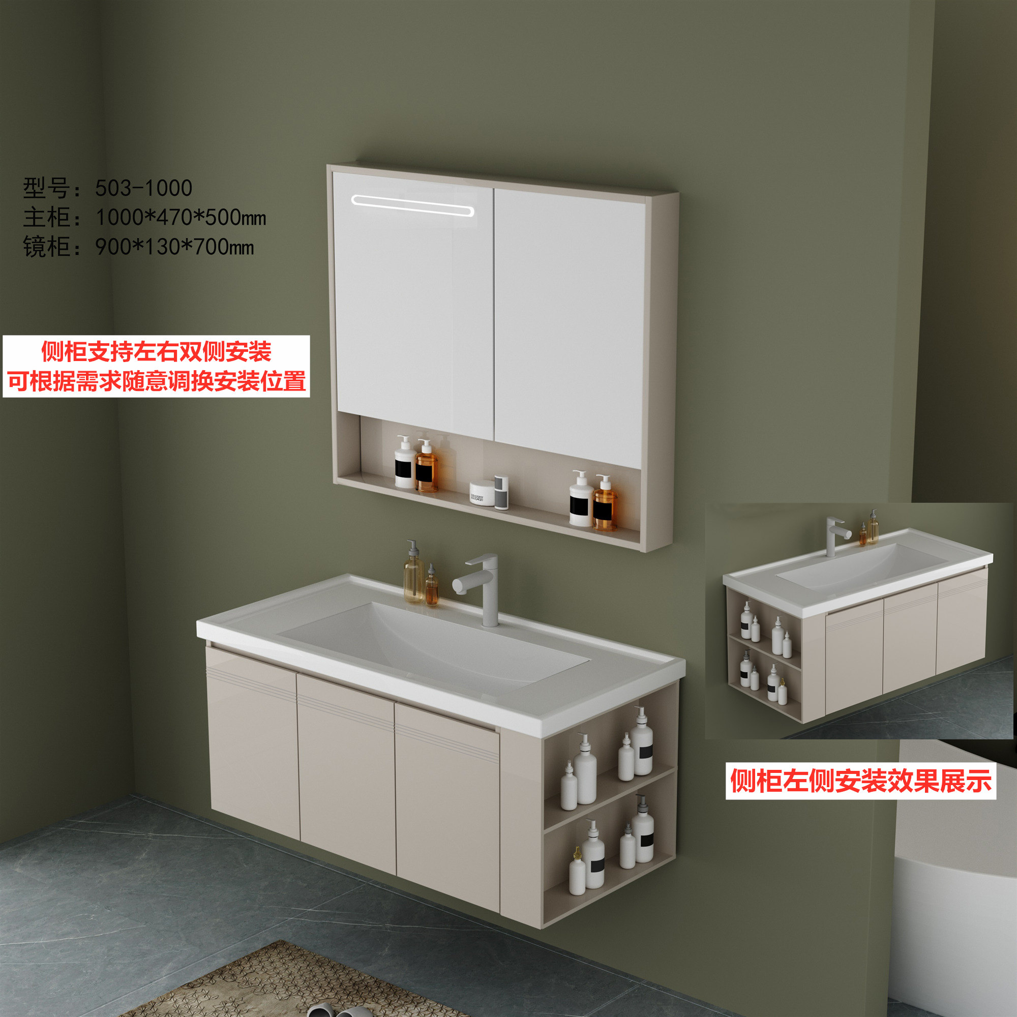 DY503主柜+智能镜柜(全铝加厚·带多功能侧柜)