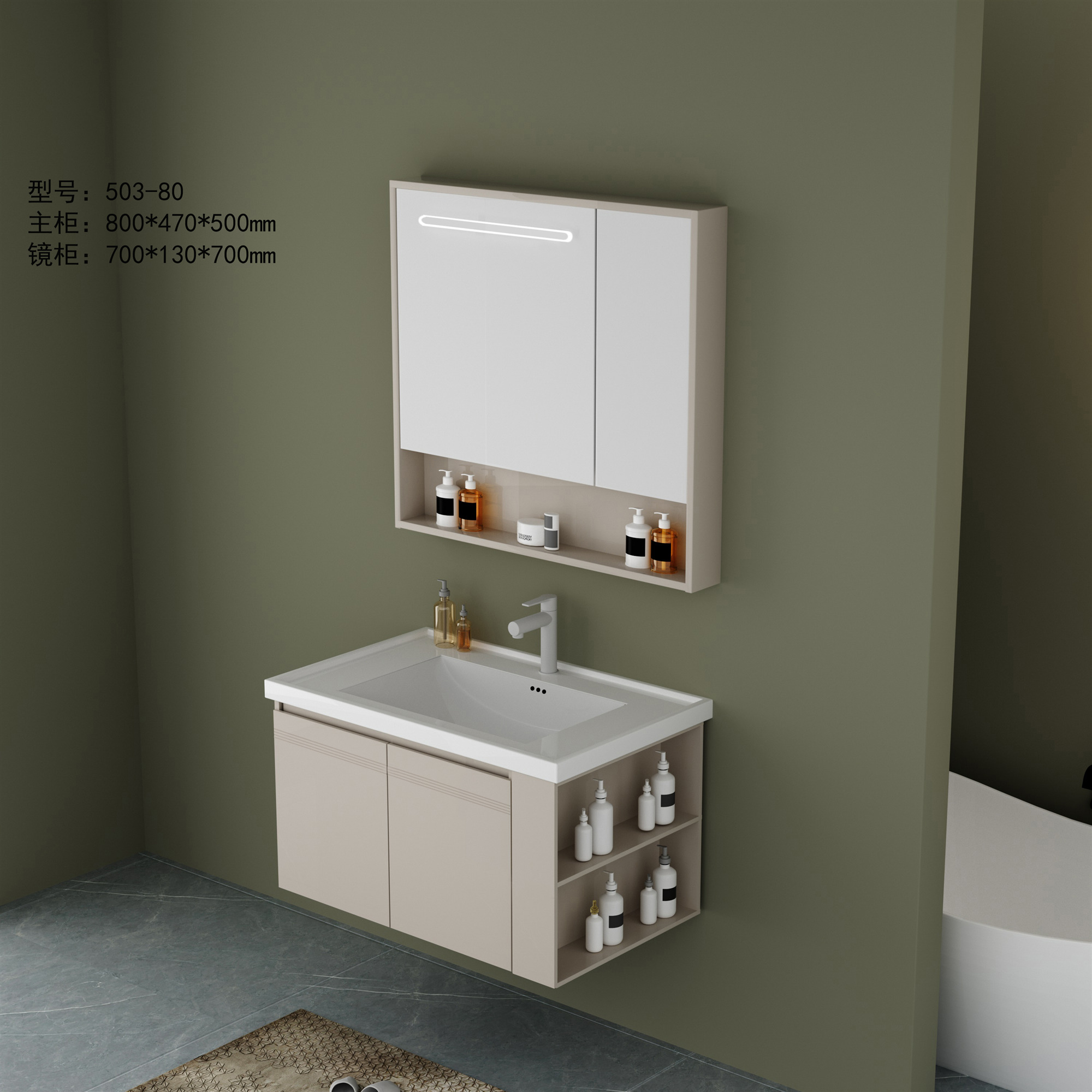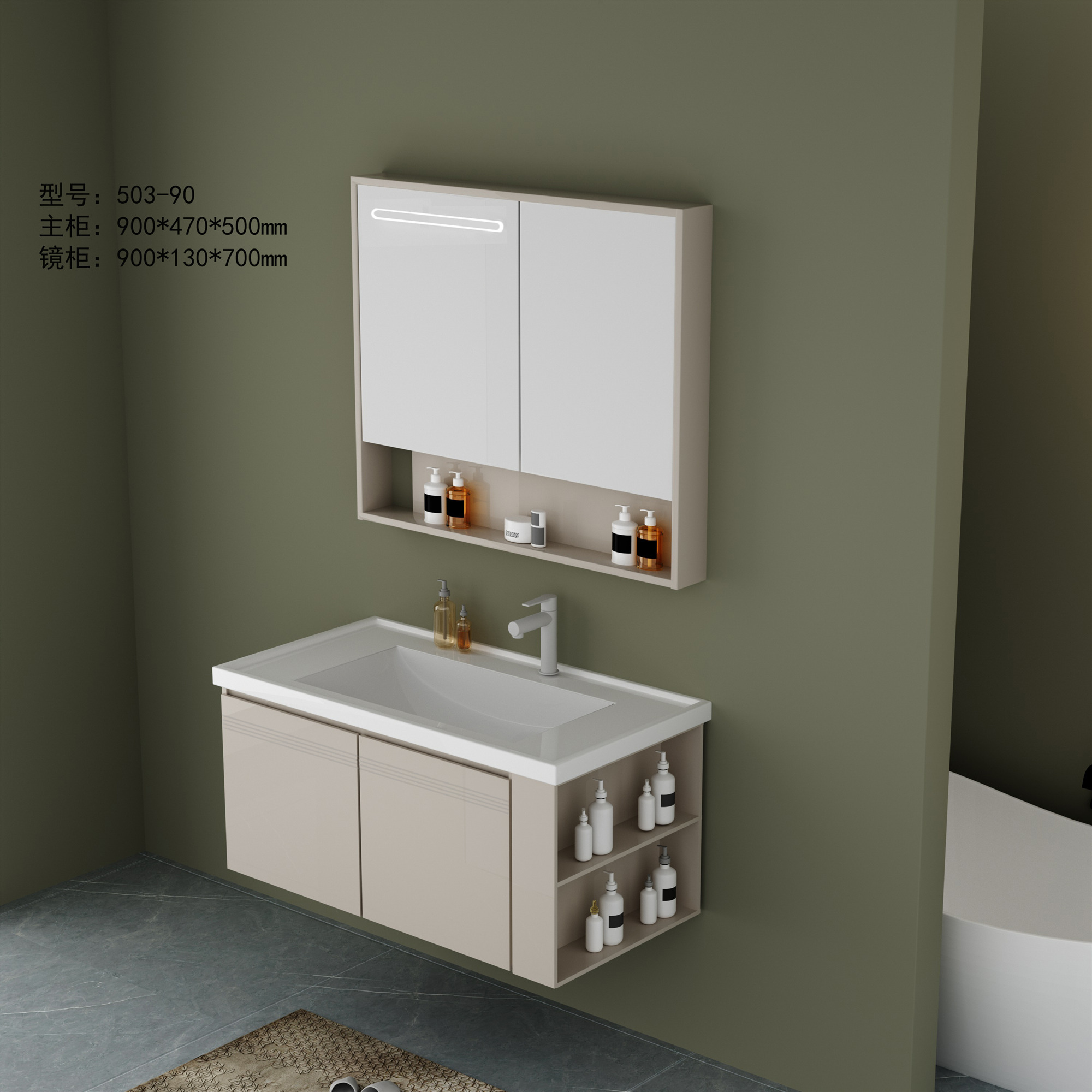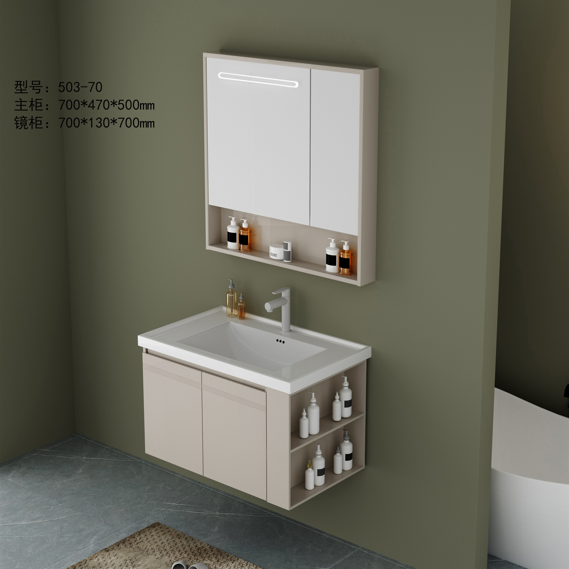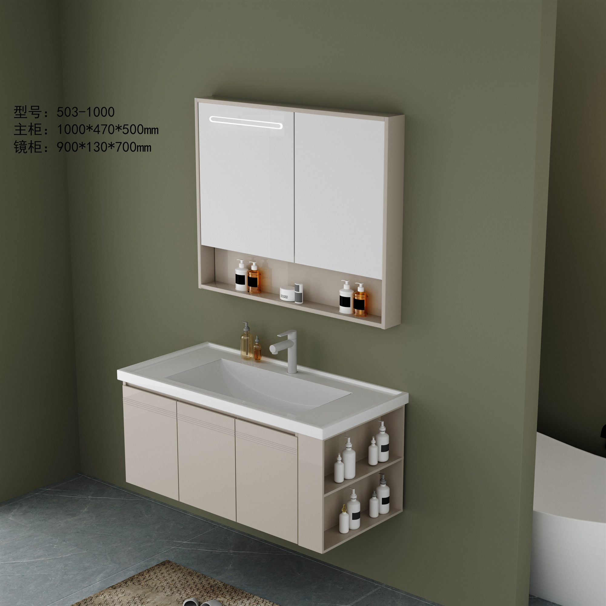 DY503主柜+智能镜柜(全铝加厚·带多功能侧柜)