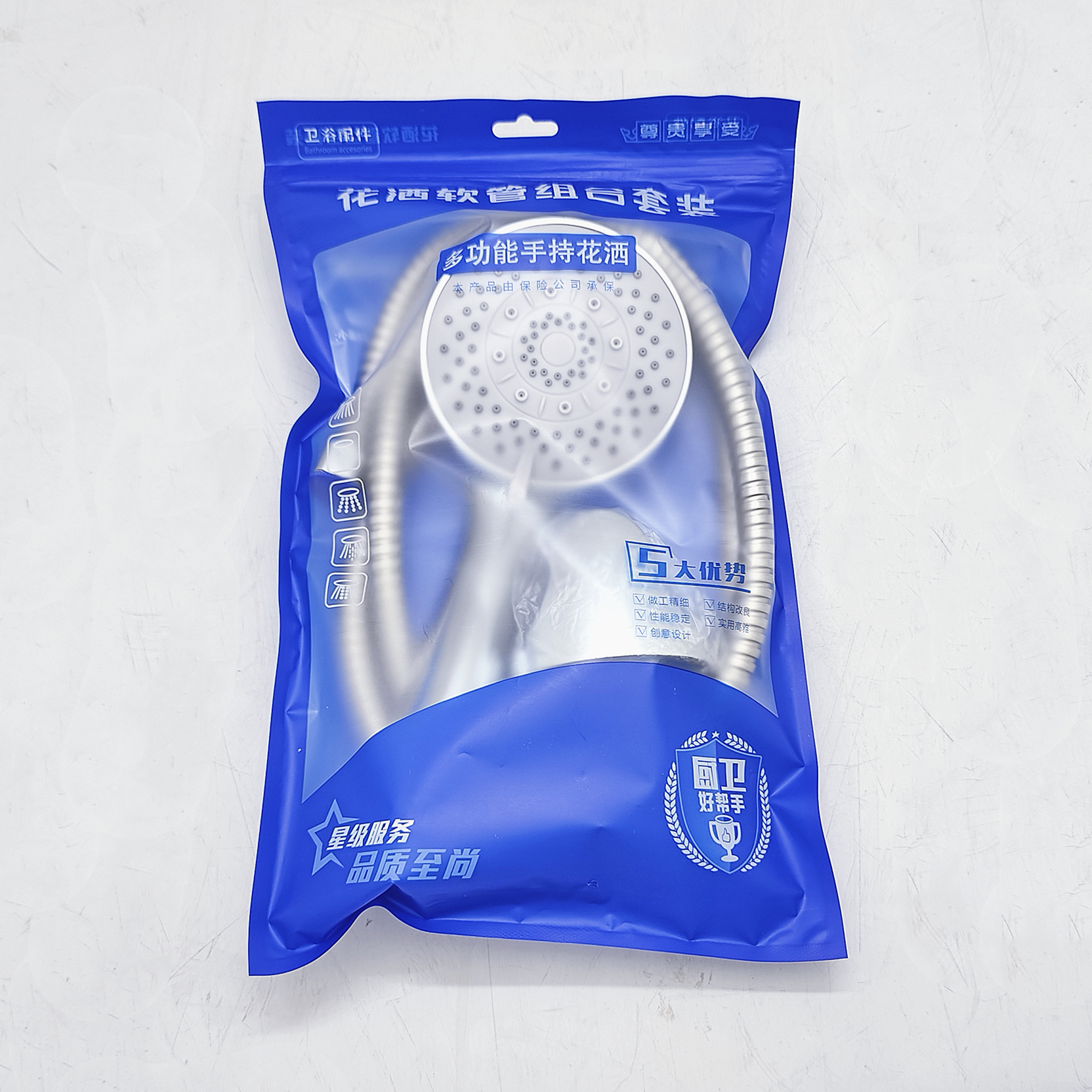 【所属类别】花洒/软管  >>  花洒/升降花洒/整套淋浴花洒  >>  吸塑装配管花洒