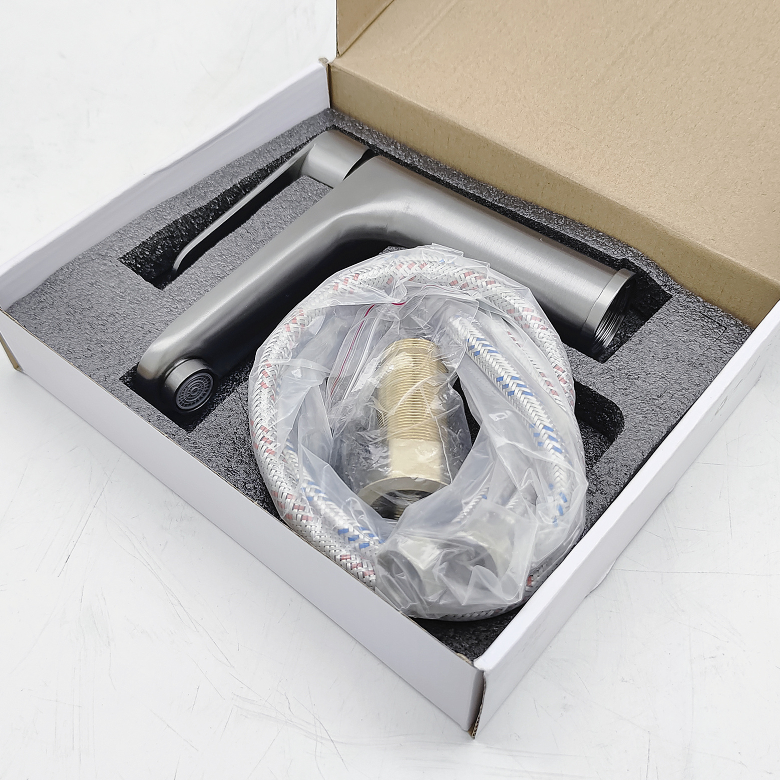 广威隆304枪灰天圆单孔冷热面盆龙头(7406-QH)